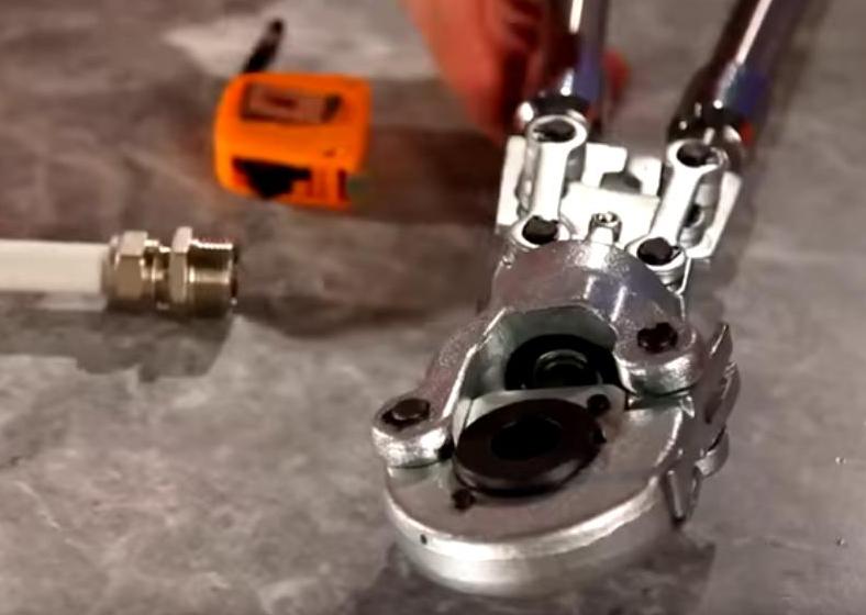 So, to install a compression fitting on a metal-plastic pipe, you will need scissors (pipe cutter), a calibrator, spanners in size. Manually straighten the piece of pipe to be crimped, and proceed according to the following instructions: