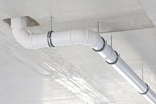 Use of sound-absorbing analogues instead of conventional pipes. Special plastic elements are on sale that are easy to recognize thanks to the marking strips on the walls. The designs made from them function absolutely silently.
