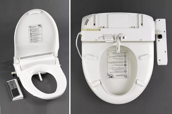 The plumbing fixture looks very much like a traditional toilet lid, though more massive. In addition, it is equipped with additional devices: a water-supplying retractable tap and a special remote control, with which you can adjust the temperature and pressure of the liquid.