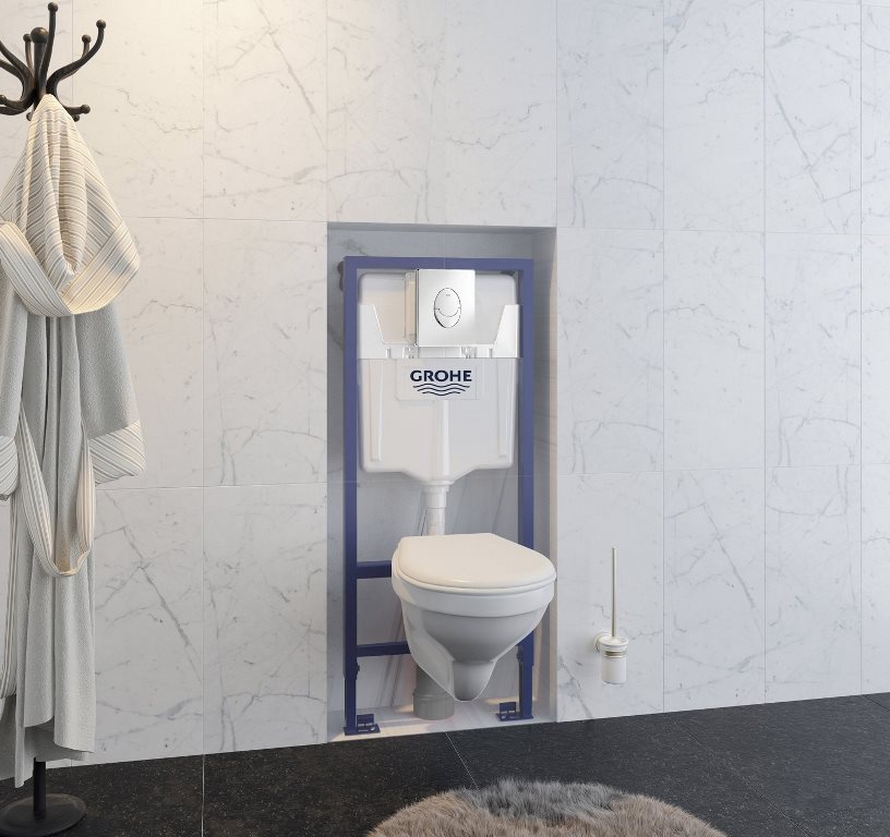 The premium segment wall-mounted structure, which also includes an anti-splash wall-hung toilet, a release button and a seat with a gently lowering lid made of duroplast.