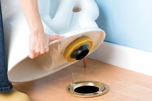The o-ring can be lubricated with silicone to prevent odor from entering the bathroom to the bathroom. Then a toilet bowl is placed on top of the flange and fixed with nuts, on which decorative caps are put on top. Installation is complete.