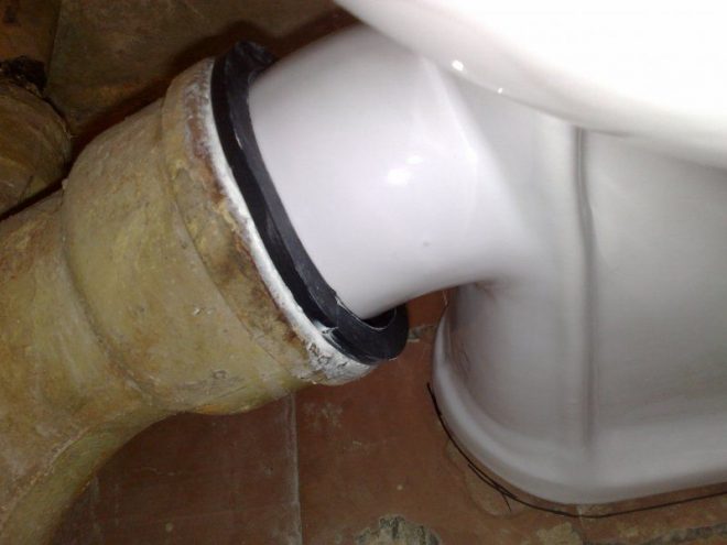 In the case of a small drop-like leakage, completely remove water from the toilet and remove corrugation from it.After that, re-grease the gum of the corrugated pipe with silicone and pull it onto the toilet pipe. It is also possible to additionally lubricate the joint with sealant from the outside.