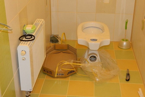 - Decide on the location of the new toilet. Put the bowl in the toilet without mounting, try to sit on it, try on several options.