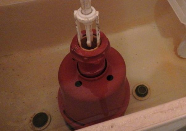 Around the middle part, it is attached to the “pear” - the rod-type outlet valve. When pouring liquid into the tank, the plastic ball should lie freely on the surface of the water.
