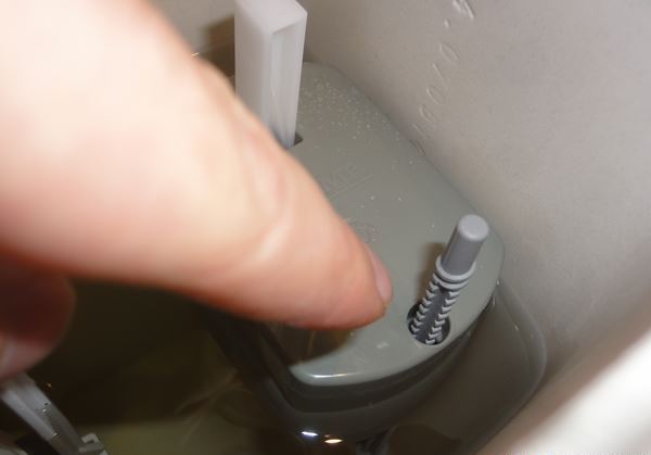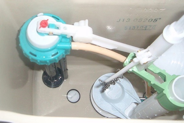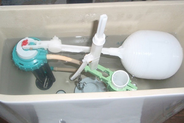 Together with the water level filling the tank, the float also rises. When the liquid level reaches the desired level, the float device blocks the flow of water. This condition persists until flushing.