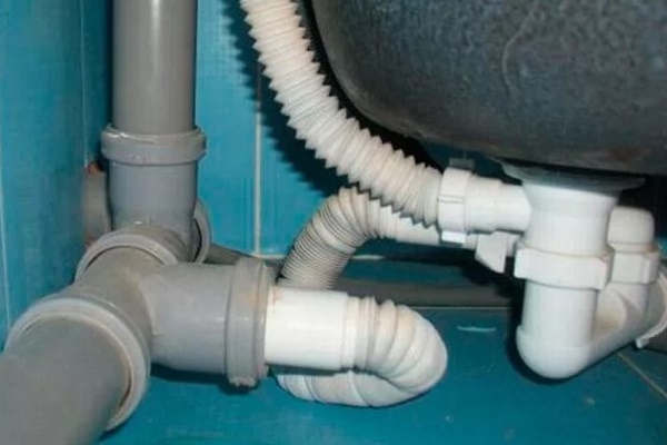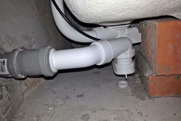 Proper drainage is ensured by the correct slope of the pipe. The drain pipe must be directed directly to the manifold. If the siphon is equipped with several inlets for branching the drain into the collector, but they are not intended to be used, you should plug them with a special nut.