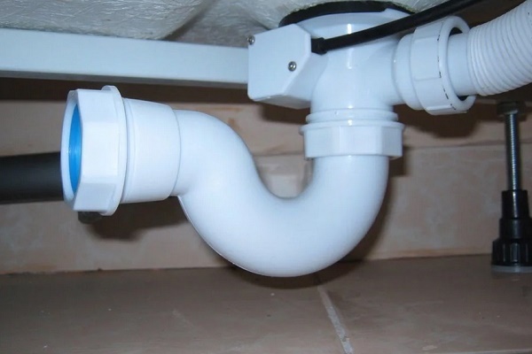 The shape of the rigid structure resembles a horseshoe or letter S in a horizontal arrangement. The barrier to the spread of unpleasant odors from the sewage system is water, which is constantly present in the bend of the pipe.
