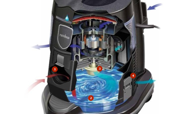 Units of the first category operate on the principle of an aquarium compressor - garbage, coarse dust is wetted and deposited in a container with water. Light fractions of dust rise with air bubbles up and are retained by a filter system.