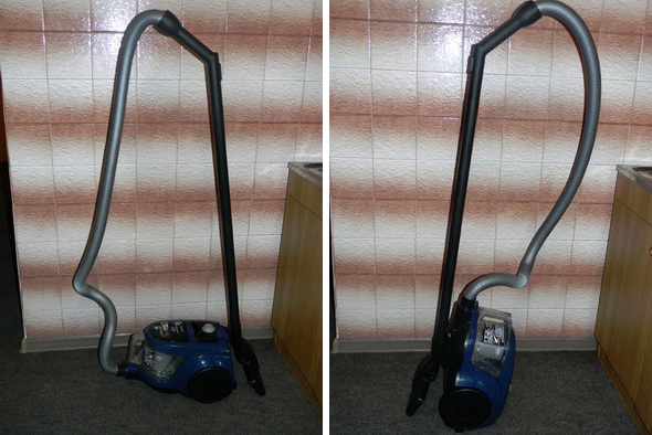 We bought the same vacuum cleaner. The fact that the hose is short is really a minus, but not for my wife - height 165, she has enough for her eyes. Conveniently, dirt is collected in a plastic container, and not in a removable bag. I washed it, rubbed it and again for work. The price is quite low, in my city about 5000 rubles at a discount. Suction power is sufficient to tighten up both small debris and a little construction (my wife forgive me).