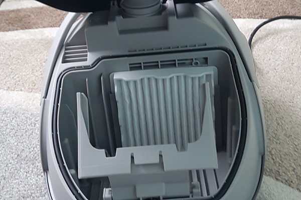 The reusable bag has to be thoroughly shaken and washed as it gets dirty. After washing, be sure to wait until it is completely dry and only then install on its workplace. To prevent the user from breathing dust, the manufacturer equipped this model with filters: output, optional HEPA11 and exhaust.