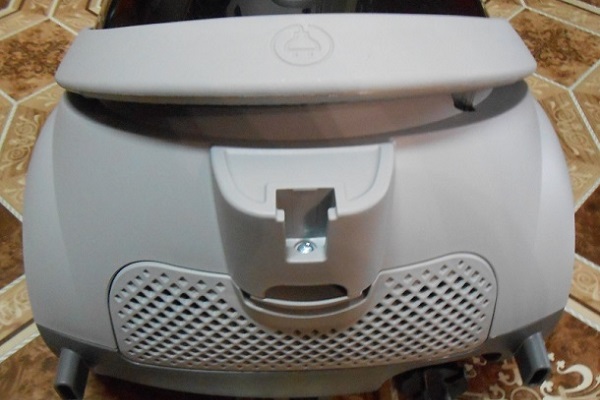 The Samsung SC5241 has a dust collector compartment. To get to it, you need to open the cover on top of the case. As a dust collector, there is a reusable bag of filter material that does not let the collected garbage and dust inclusions out.