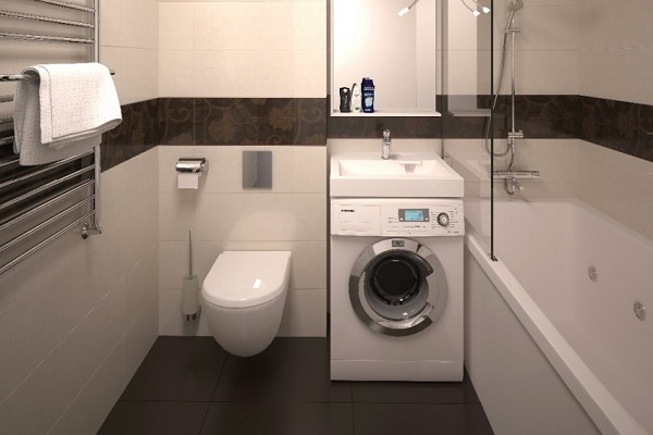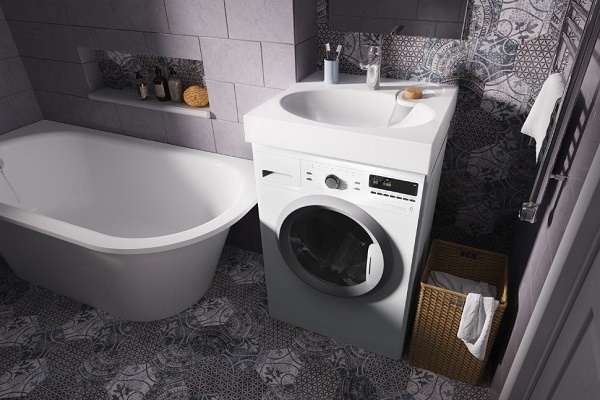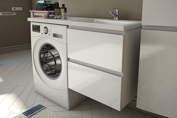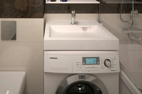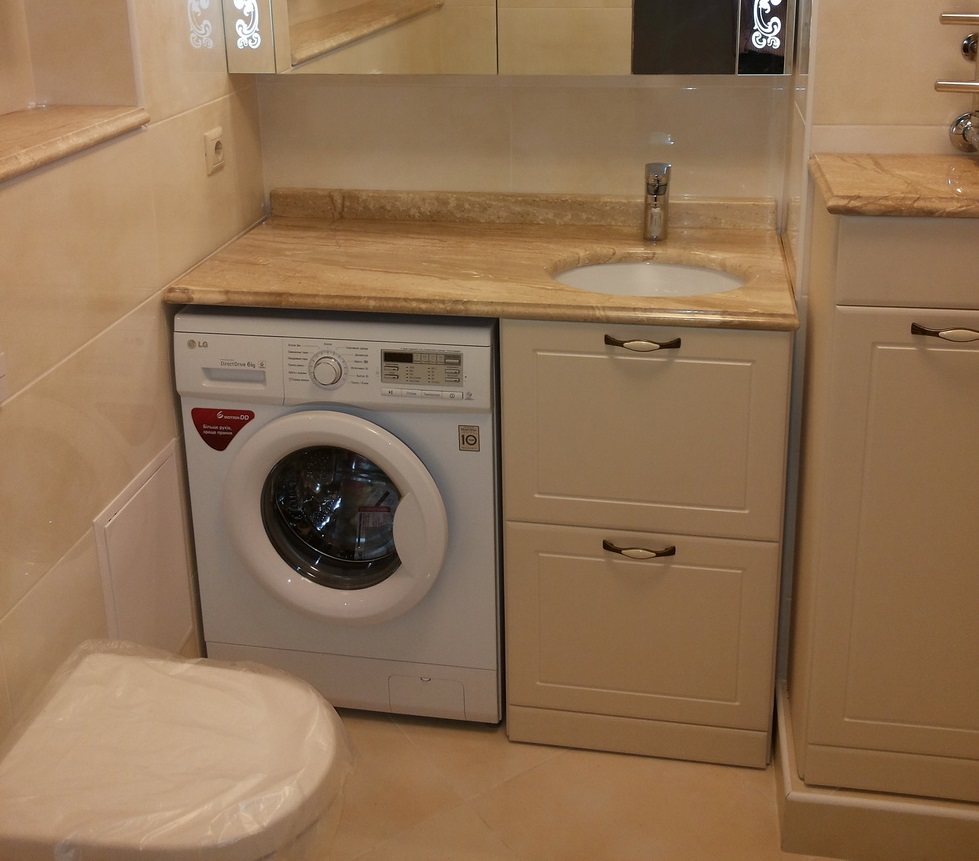 If you have a sink with a countertop and in the bathroom there is enough space, then you can additionally install special furniture adapted for installing the washing machine - it will create a single style in the room.