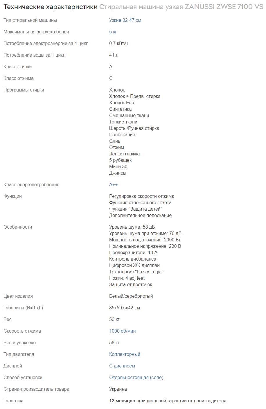 At the expense of the weight of the machine itself, I do not agree with you, since mini-format washers weigh as well as full-fledged options. Attach a photo on the example of the characteristics of Zanussi. As you can see, their weight is almost the same, so the problem of “dancing” the machine is not in its weight, but in improper installation. You need to set the machine in level so that it does not vibrate and does not jump during the spin cycle. You can be guided this materialto fix the problem.