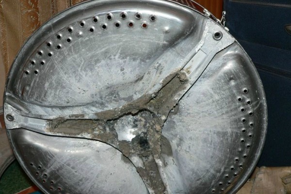 - Damage to the metal surface of the drum. The appearance of roughness and even burrs will cause loss of appearance of clothing.