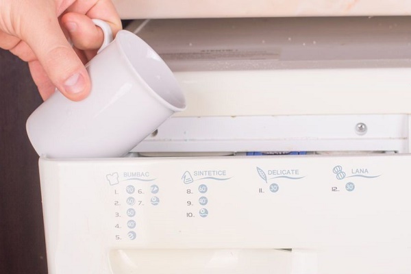 2. 1/4 cup of soda, 2 cups of vinegar, 1/4 cup of water - mix the soda with water, and pour the vinegar into the drum and turn on at maximum speed.