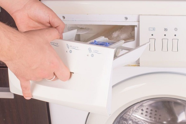 - Pour this cool soda solution into the box of the machine, designed to load detergents.