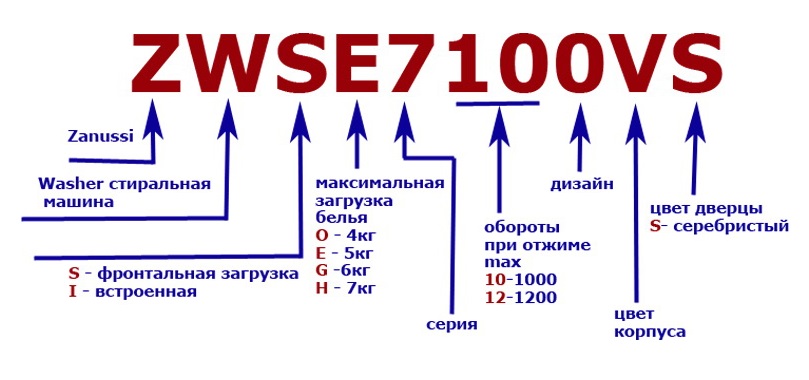 As you can see from the example, the name of the technique is systematized - the designation contains the main parameters of the washer. Therefore, an understanding of the labeling will help you navigate the variety of the assortment when choosing the right model. We gave more selection recommendations. here.