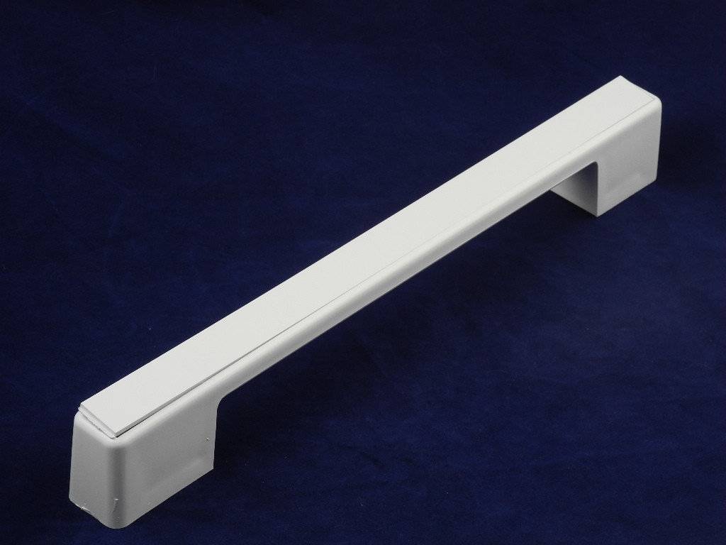 You have taken a photograph from an uncomfortable angle, you can’t see the mountings of the plastic handle. But apparently your handle is built-in and is part of the front panel, and the mounts are located under the panel itself. Judging by the attached photo, I can draw such conclusions.