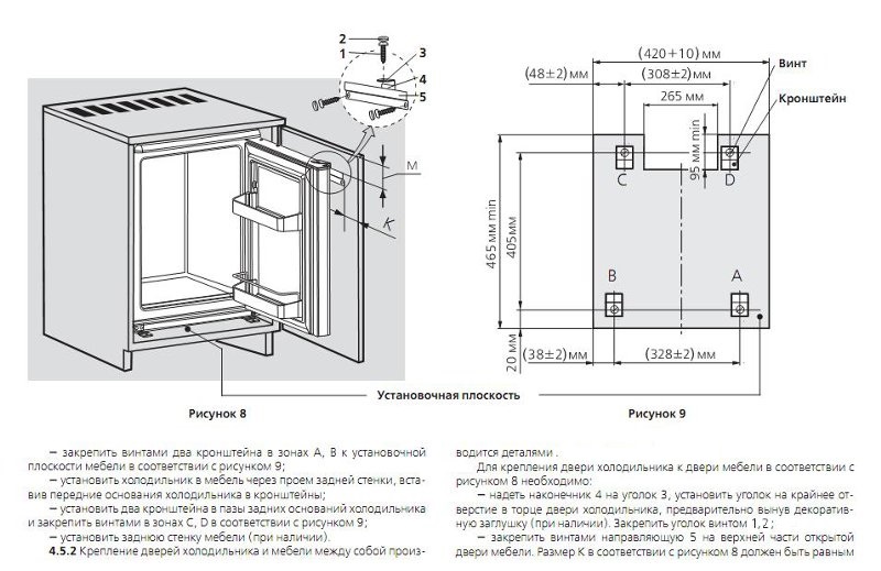 The kit of the built-in refrigerator should include instructions in the pictures for its installation. For the installation, the furniture opening needs to be arranged so that the heat from the working refrigerator does not accumulate, but is displayed outside.