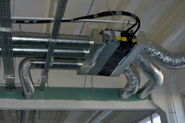 A small number of working elements is justified by minimizing noise in the living space. All parts are assembled in a durable case, which is disguised as false walls and ceilings.
