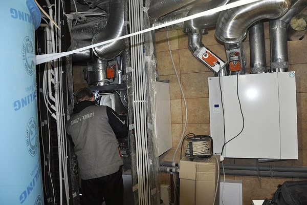 It receives a liquid with a low temperature, then transfers the cold to the air in the room, and the heated liquid returns to the chiller. Fancoils are installed in all rooms. Each of them works according to an individual program.