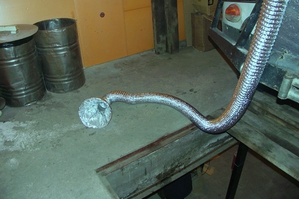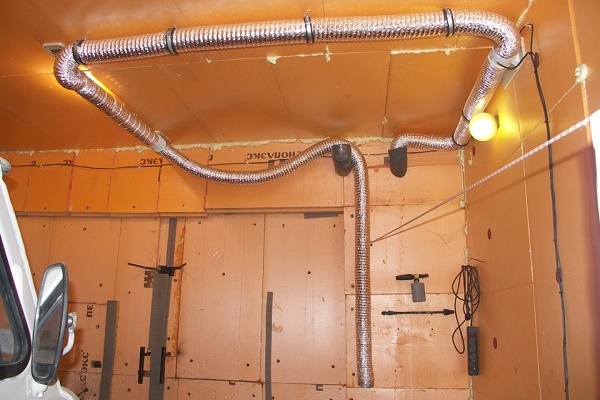 Those who wish to equip the garage with an effective exhaust system, required to remove toxic substances generated during welding and painting, it will be useful to familiarize yourself with the following photo selection. It represents the process of constructing a hood with corrugated tube sliding sleeve:
