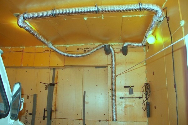- An exhaust hole is made at the top, almost under the ceiling or even directly in the ceiling.