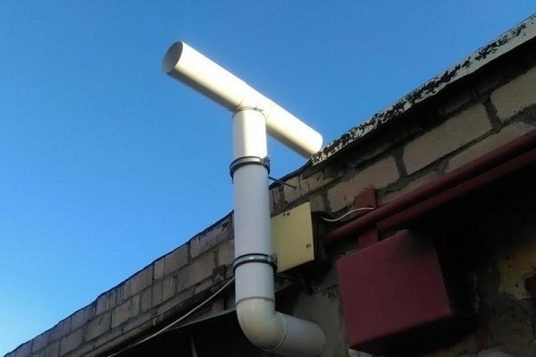 - Deflector - a special cap, which is installed on the edge of the vertical section of the exhaust pipe to create a rarefied atmosphere inside the structure and accelerate the movement of air masses.