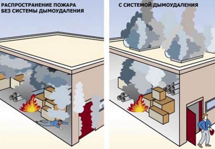 In addition to the threat of poisoning, smoke causes a loss of orientation and panic during the evacuation. There are specially designated places where the smoke removal system should lie.