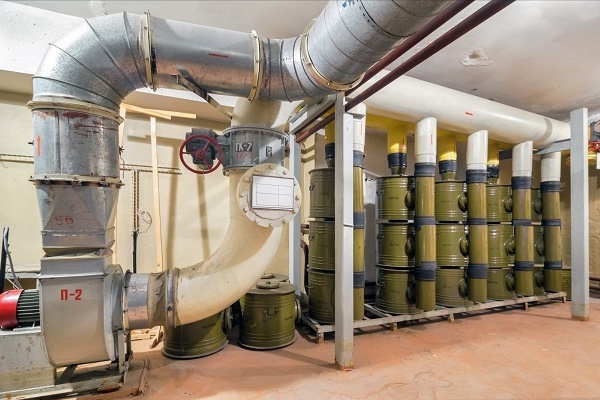 Fresh air enters through air ducts. They are pipes to which fans are connected, which carry out a supply of air masses.Canals lead to places where people are evacuated, including to elevator shafts.