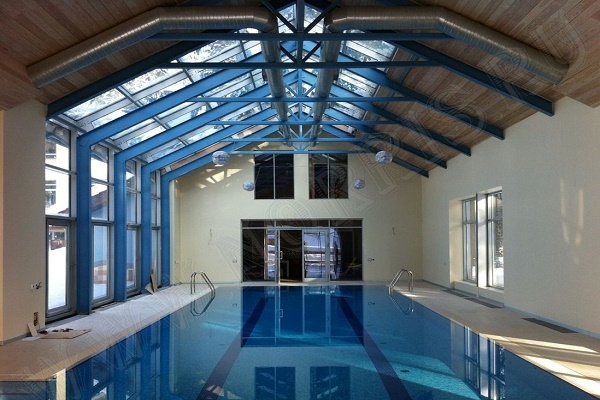 In modern housing construction, the construction of indoor swimming pools has recently become very popular. The pool in the cottage or private house is arranged according to an individually prepared project.