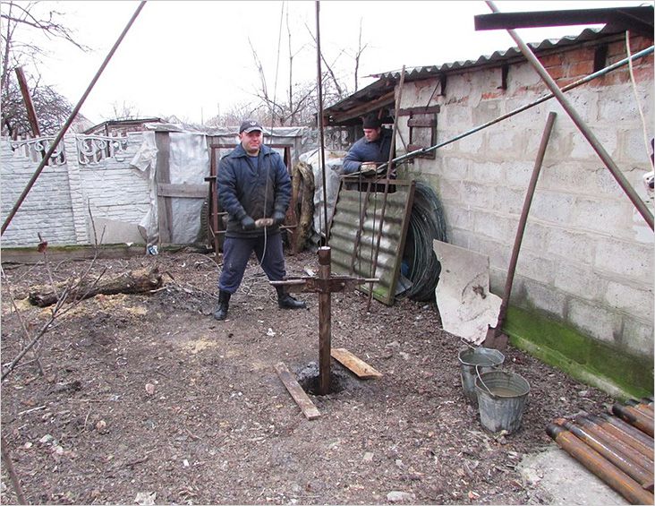 A small depth well can also be drilled with a screw. Its rotation is carried out both manually and using mechanisms. In any case, a tower is built over the future well in the form of a tripod to facilitate the lifting of the tool. When choosing the second method, you will also need an electric motor suitable for power.