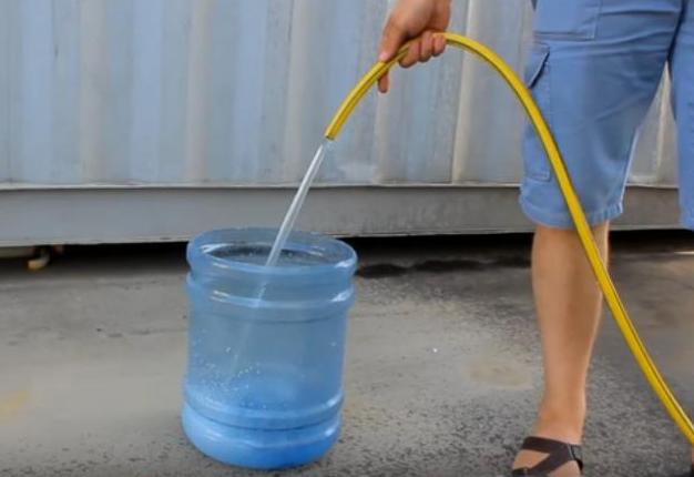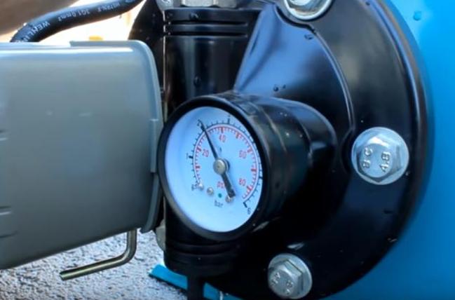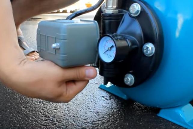 Pour water to the neck of the cork, which is then twisted again. Then, using a simple automobile pressure gauge, check the air pressure in the accumulator. The system is ready to start.