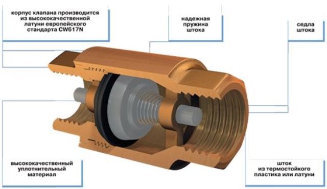 On the water side, a casing sleeve is attached to the pipe. A check valve is screwed onto it, preventing the flow of water from moving back into the well. Thus, the valve prevents the system from emptying - it remains always full.