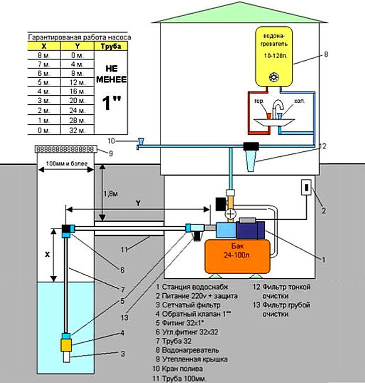 This part of the overall circuit is located between the pumping station and the well. It is through it that water is drawn and the system is powered. Its device is simple, but there are several important points.