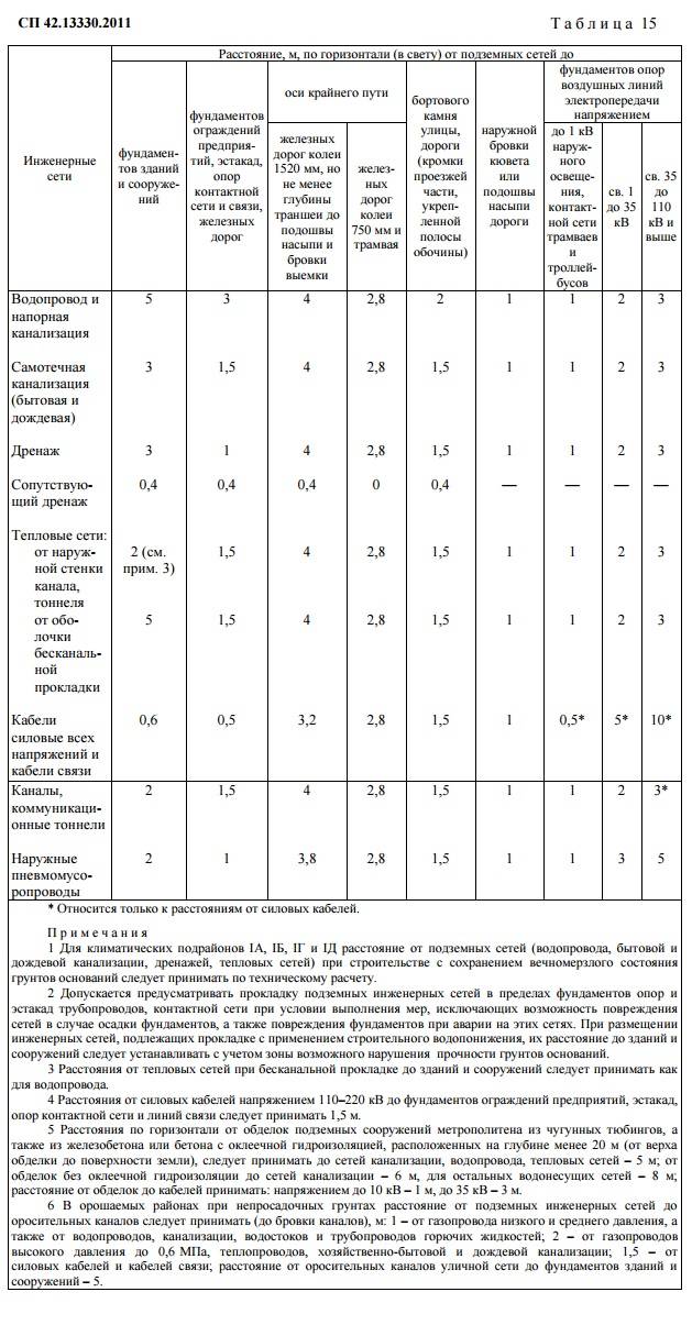 6.P.12.35. tableau 15 dans SP 42.13330.2011 (photo en annexe).