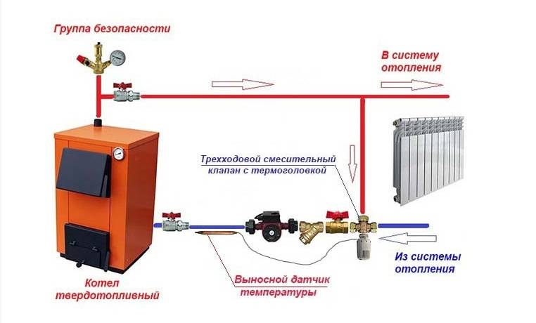 3. Les fabricants recommandent que la température du liquide de refroidissement de retour dans la chaudière soit d'au moins 60 degrés. Cela est dû à la formation de condensat, avec un débit plus faible, sa formation est inévitable. À son tour, cela affecte la durée de vie de la chaudière. La mise en œuvre de cette recommandation dans une chaufferie modèle est assez difficile.
