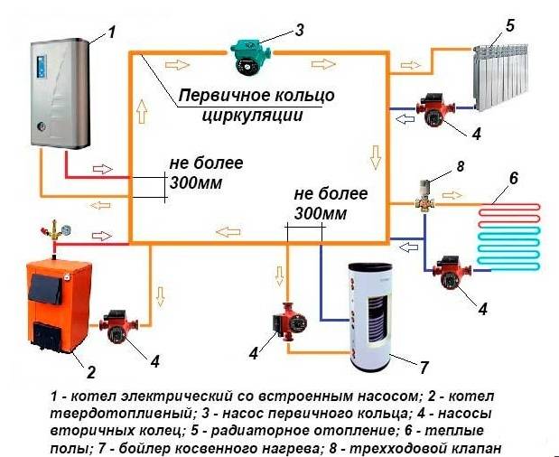 Un schéma intéressant serait le chauffage combiné avec une chaudière à combustible solide avec électricité. Il est également possible de relier une chaudière indirecte à un tel schéma. La figure 3 montre un diagramme. Et je vous recommande de vous familiariser avec cet article - Il présente les fabricants éprouvés de chaudières à combustibles solides.