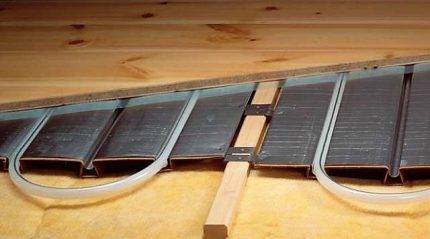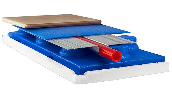 Vous pouvez acheter un kit prêt à l'emploi avec isolation, qui se déplie simplement sur le sol, ou vous pouvez économiser un peu et acheter uniquement des plaques conductrices de chaleur et les poser sur les rails. Puisque vous avez déjà réalisé une isolation thermique, la deuxième option vous convient mieux. L'aspect est visible sur les photos: deux options pour les décors et la disposition sur rails.