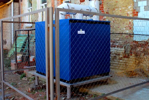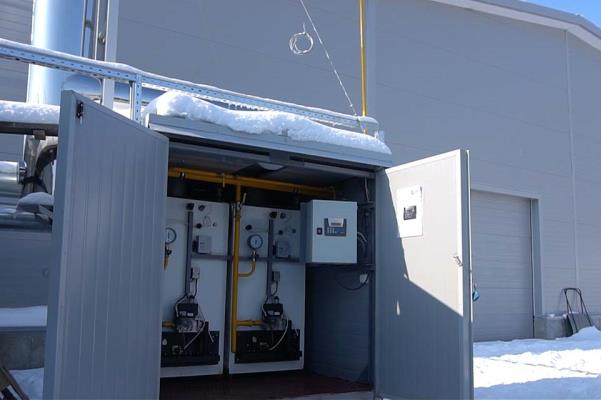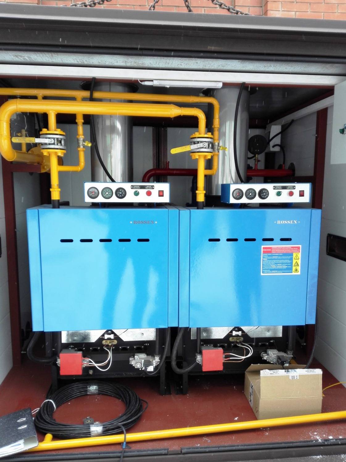 Des pipelines et un câble électrique relient le bâtiment et les chaudières, de sorte qu'ils démarrent à l'intérieur de l'installation, où la télécommande est installée. Vous pouvez contrôler la chaudière directement depuis le bureau, situé à l'intérieur du bâtiment