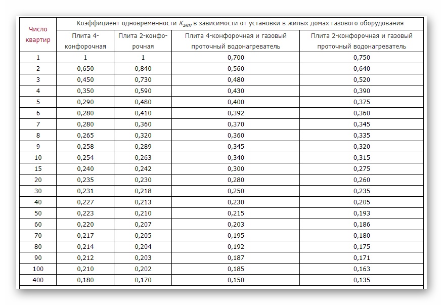 Sans faute, un facteur de simultanéité sera nécessaire. Il prend en compte la possibilité d'un travail en commun de tous les consommateurs de gaz connectés au réseau. Par exemple, tous les équipements de chauffage situés dans un immeuble d'appartements ou une maison privée.