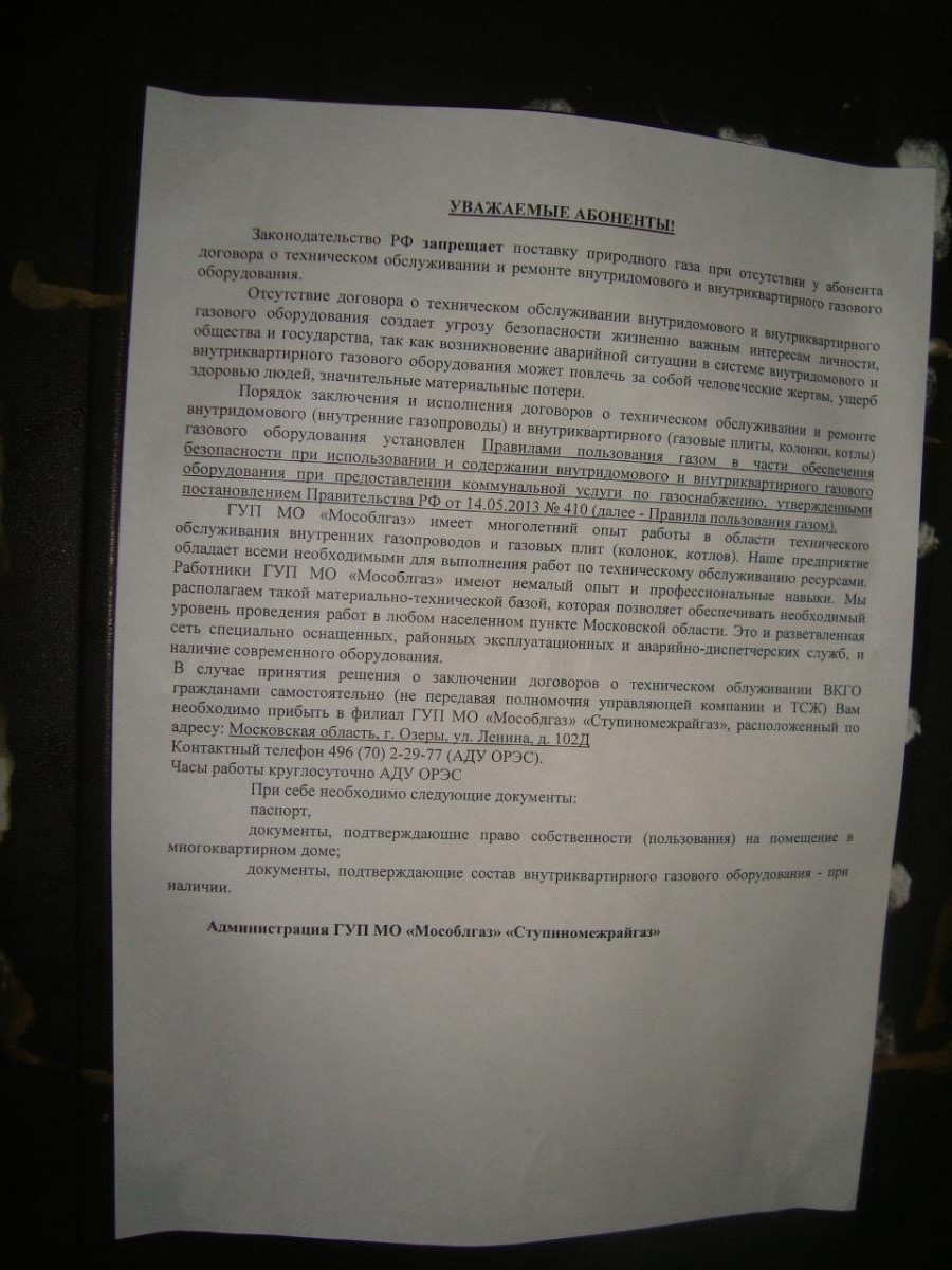 Il existe 2 types de contrats de gaz pour la population: pour la fourniture de gaz et pour entretien équipement domestique à gaz.
