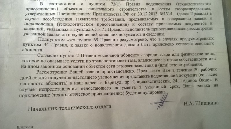 L'accord de raccordement au gaz est la prochaine étape. C'est de la manière prescrite par le Code civil de la Fédération de Russie.