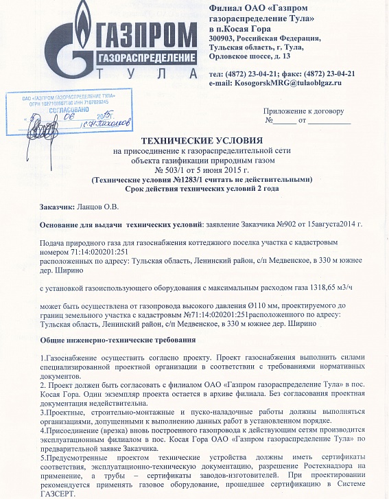 Spécifications - il s'agit d'un document spécial de l'organisme fournisseur de gaz réglementant la possibilité et les caractéristiques de connexion au réseau de distribution. Sur cette base, un projet d'approvisionnement en gaz est en cours de développement.