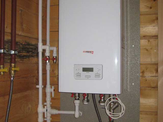 Toutes les exigences ci-dessus s'appliquent également aux maisons en bois. La seule différence est qu'avec une puissance de chaudière supérieure à 60 kW, le volume minimal autorisé d'une pièce doit être de 27 m³. Dans le même temps, l'installation doit être effectuée sur une fondation en matériaux incombustibles, qui devrait également protéger les murs en bois contre les effets des températures élevées.
