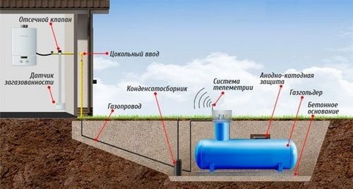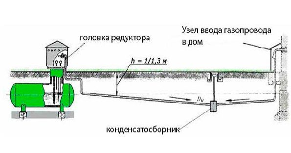 Les consommateurs privés peuvent être confrontés à la nécessité d'installer un collecteur de condensats uniquement sur un réservoir de gaz - nous nous attarderons sur cette question plus en détail. Le support de gaz est installé sur distance de la maison, selon les exigences des normes - au moins 10 m, mais parce que le tuyau vers le sous-sol est généralement posé horizontalement sous terre.