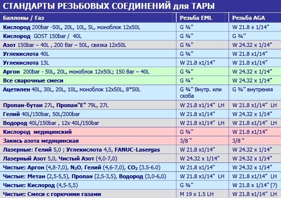 Selon le type de gaz traversé, les boîtes de vitesses sont divisées selon les types suivants, chacun étant peint d'une certaine couleur pour une identification supplémentaire: