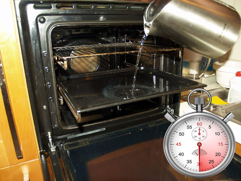 3 cuillères à soupe de vinaigre à 9% sont ajoutées dans un récipient d'eau. La grille de la plaque est trempée dans une solution et placée dans un four préchauffé à 60-80 degrés.