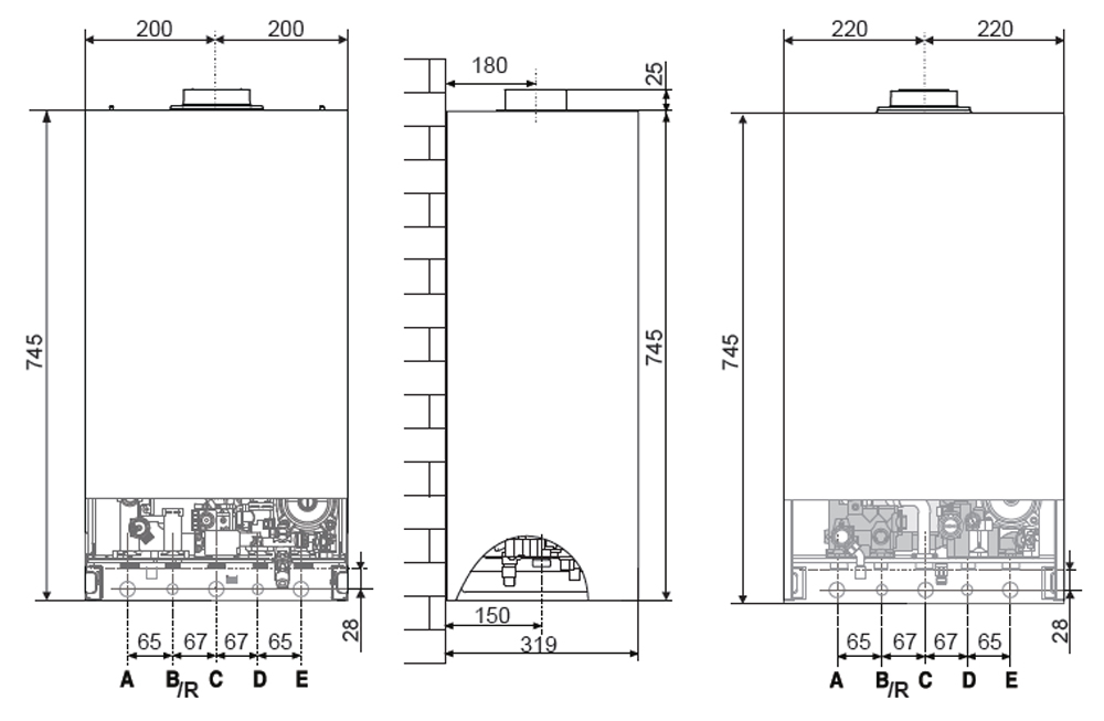 L'installation d'équipements à gaz selon le schéma «B» nécessite l'organisation d'une ventilation et d'une prise d'air efficaces dans les salles de travail.