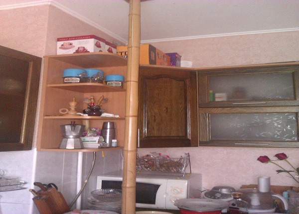 Le thème du style ethno est des détails intérieurs légers et discrets en matériaux naturels. Créer une colonne en bambou cachant un tuyau de gaz est une technique décorative simple.